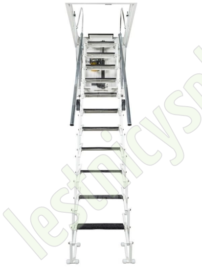 Автоматическая раздвижная ножничная чердачная лестница, с электромотором для дистанционного открывания.