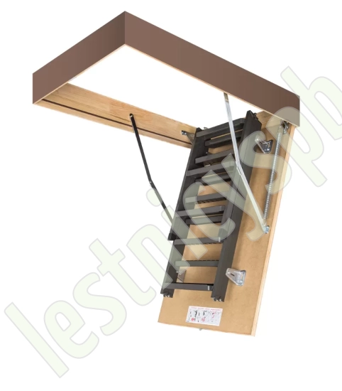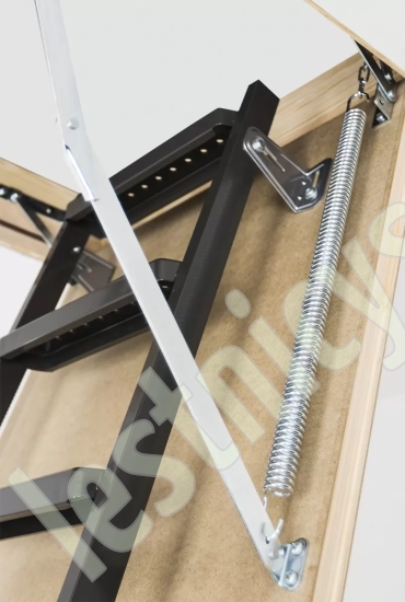 Установленные в лестнице угловые петли-шарниры нового образца придают ей высокую прочность и надежность, а также предохраняют короб от возможной деформации. Основное преимущество чердачной складной металлической лестницы LMS сводится к ее небольшим габаритам при сохранении высокой функциональности, прочности, надежности и эстетичности конструкции. Монтировать лестницу очень просто, для этого не придется затрачивать много времени и сил.