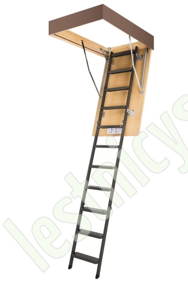 Установленные в лестнице угловые петли-шарниры нового образца придают ей высокую прочность и надежность, а также предохраняют короб от возможной деформации. Основное преимущество чердачной складной металлической лестницы LMS сводится к ее небольшим габаритам при сохранении высокой функциональности, прочности, надежности и эстетичности конструкции. Монтировать лестницу очень просто, для этого не придется затрачивать много времени и сил.