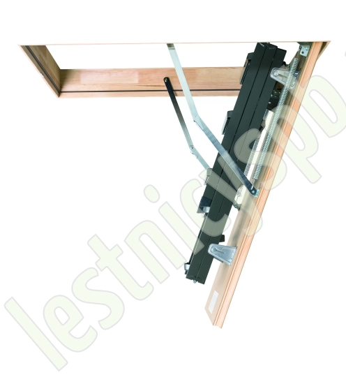 Установленные в лестнице угловые петли-шарниры нового образца придают ей высокую прочность и надежность, а также предохраняют короб от возможной деформации. Основное преимущество чердачной складной металлической лестницы LMS сводится к ее небольшим габаритам при сохранении высокой функциональности, прочности, надежности и эстетичности конструкции. Монтировать лестницу очень просто, для этого не придется затрачивать много времени и сил.