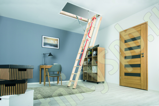 Складная чердачная лестница LWL имеет повышенные теплоизоляционные параметры и высокий класс герметичности. Утеплённая крышка люка белого цвета. Лестница оборудована специальным механизмом LXM-3 и крючком на нижней ступени марша для стержня, которые в комплексе обеспечивают лёгкость и плавность открывания и закрывания лестницы. Снабжена дополнительным поручнем для безопасного подъёма.