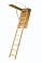 Деревянная чердачная лестница LWS изготовлена из древесины сосны и укомплектована утепленной крышкой, облицованной ДВП бежевого цвета (толщина крышки люка с утеплителем – 36 мм). Крышка люка крепится металлическими шарнирами, которые позволяют регулировать длину лестницы (макс. 40 мм). Для транспортировки лестница снижается в пазах, перед использованием необходимо отодвинуть лестничный марш от плиты люка.