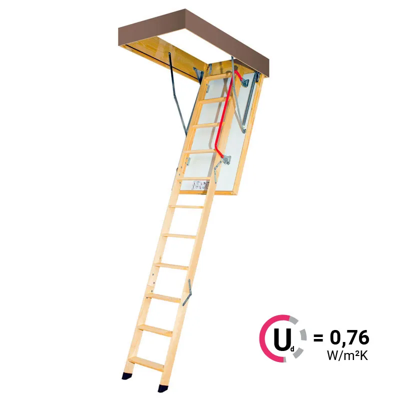 Складная чердачная лестница LWL имеет повышенные теплоизоляционные параметры и высокий класс герметичности. Утеплённая крышка люка белого цвета. Лестница оборудована специальным механизмом LXM-3 и крючком на нижней ступени марша для стержня, которые в комплексе обеспечивают лёгкость и плавность открывания и закрывания лестницы. Снабжена дополнительным поручнем для безопасного подъёма.