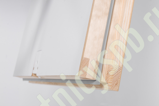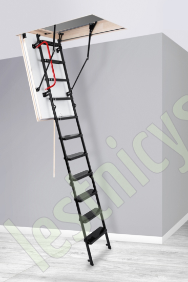 Лестница складная трехсекционная. Рабочая поверхность полностью выполнена из металла и покрашена порошковой краской. Термоизоляционная крышка типа "сэндвич", толщиной 86 мм, утеплена пенопластом, облицована с двух сторон ДCП белого цвета.