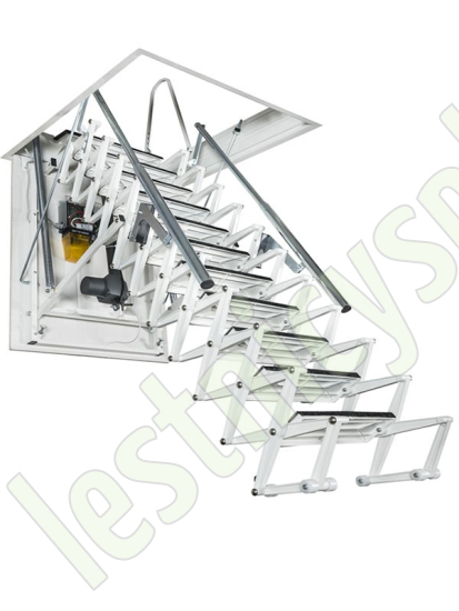 Эта автоматическая выдвижная лестница от итальянской компании Fantozziscale Motor имеет уникальный раздвижной (телескопический) поручень для удобного подъема и спуска. Лестница устанавливается для подъема на чердак или мансарду, имеет пульт дистанционного управления, который обеспечит максимальное удобство и комфорт при эксплуатации лестницы. FANTOZZISCALE ALUMINNO – автоматическая лестница, изготовленная в Италии на фабрике с помощью автоматической линии где применяется робототехника. Фабрика Fantozziscale Motor гарантирует высокое качество лестницы, уникальные технологии и надежность.