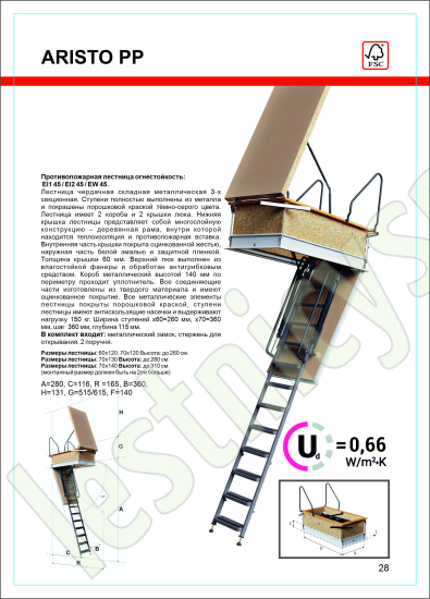 | Противопожарная чердачная лестница с люком OMAN ARISTO PP 70х130 см, h-280 см |