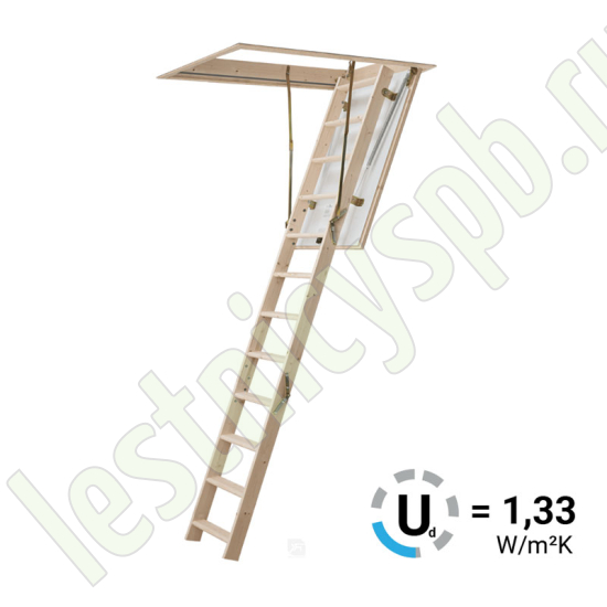 HOBBY 26 - трехсекционная утепленная лестница из скандинавской медленнорастущей ели, отличающейся повышенной прочностью.