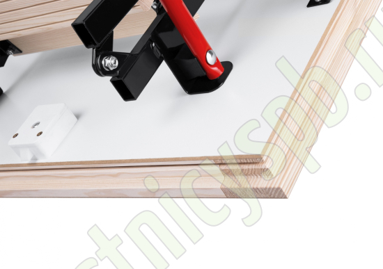 Складная 4-х секционная чердачная лестница. Ступени выполнены из сосны, имеют противоскользящие насечки, направляющие из металла