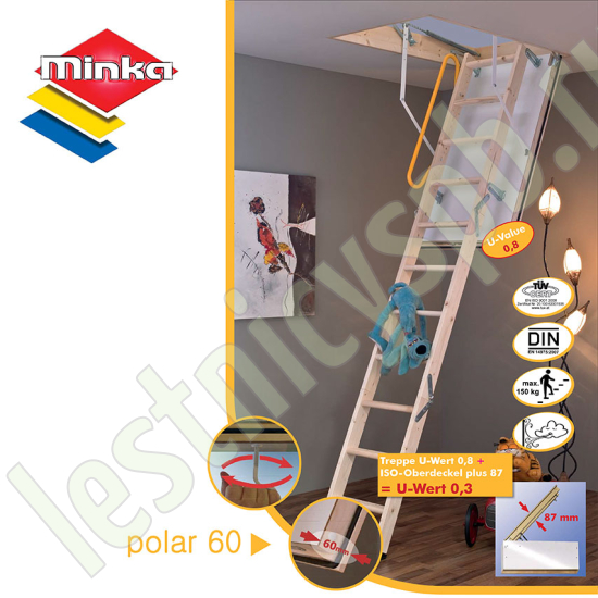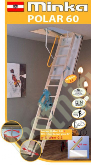 Чердачная лестница трехсекционная из массива ели.