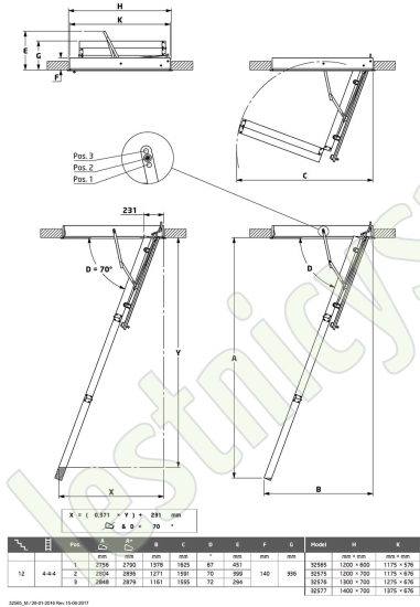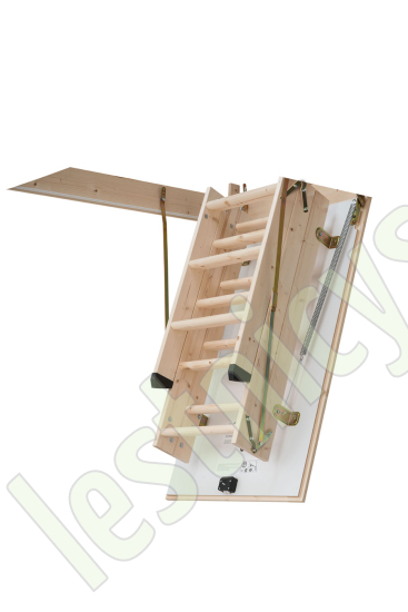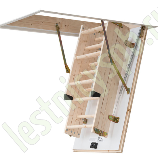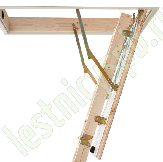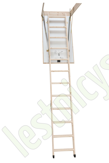 PROF 36 - трехсекционная утепленная лестница из скандинавской медленнорастущей ели, отличающейся повышенной прочностью, ступени из сосны, имеют антискользящие насечки. Лестница оснащена поворотным замком, надежно фиксирующим люк в закрытом состоянии. Высоту базовой модели можно увеличить при помощи дополнительной секции до 3500 мм. Размер короба: 1175х676 мм