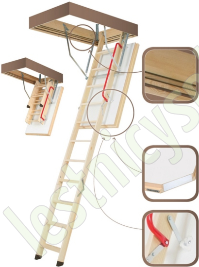 Деревянная чердачная лестница LWT оборудована суперэнергосберегающей крышкой белого цвета и коробом с тремя контурами уплотнения. Благодаря техническим параметрам данная модель лестницы обеспечивает высокую герметичность и минимальные потери тепла.