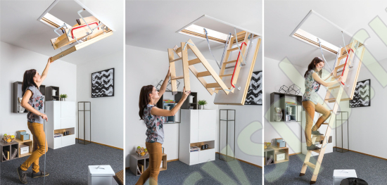 Превосходно подходит для домов, в которых наблюдается значительная разница температур между неотапливаемым холодным чердаком и отапливаемым жилым помещением. В данной модели применена новая конструкция, повышающая прочность и надежность движущихся элементов. Нагрузка при эксплуатации перенесена на лестничный марш, благодаря чему крышка полностью заполнена утеплителем. Лестница LWT комплектуется удобным поручнем и пластиковыми наконечниками на ножки. Монтажный комплект LXK приобретается отдельно.