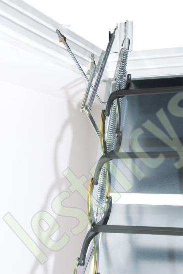 Благодаря «ножничной» системе складывания в сложенном виде лестница LSF очень компактна, и соответственно имеет небольшой размер крышки люка. Специальный механизм регулировки угла открывания крышки люка позволяет подогнать высоту лестницы под высоту потолка.