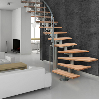 Винтовая лестница Solo vertical серебро, натуральный бук