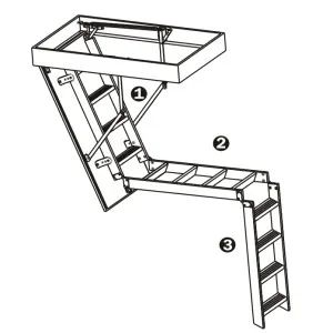 Складная 4-х секционная чердачная лестница. Рабочая поверхность полностью выполнена из алюминия. Термоизоляционная крышка типа "сэндвич" имеет усиленную теплозащиту, облицована с двух сторон ДВП белого цвета.