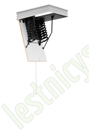 Все элементы лестницы выполнены из экологически чистых материалов и обработаны веществами, не содержащими тяжелых металлов. На ступенях антискользящие насечки. Короб лестницы изготовлен из металла. Термоизоляционная крышка типа "сэндвич" утеплена пенопластом, облицована с двух сторон ДСП белого цвета. Короб люка с уплотнителем. В комплекте деревянный стержень для открывания лестницы.