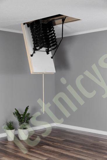 Модель лестницы, благодаря использованию цельнометаллической ножничной конструкции, идеально подходит для установки в помещениях высотой до 290 см. Выбор лестницы NOZYCOWE TERMO SUPER - это инвестиция, которая позволяет минимизировать потери теплого воздуха и значительно снизить расходы на отопление.