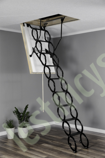 Модель лестницы, благодаря использованию цельнометаллической ножничной конструкции, идеально подходит для установки в помещениях высотой до 290 см. Выбор лестницы NOZYCOWE TERMO SUPER - это инвестиция, которая позволяет минимизировать потери теплого воздуха и значительно снизить расходы на отопление.