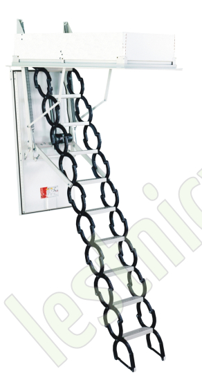 Электрическая лестница раскладывается и собирается всего за несколько секунд с помощью пульта ДУ. Механизм функционирует от обычной розетки, а специальное защитное покрытие обеспечит огнестойкость конструкции до 30 минут.