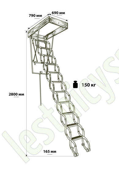 Материалы: корпус и утепленный люк из древесины хвойных пород с теплоизоляцией из пенопласта; ступени и тетивы из металла для максимальной прочности.