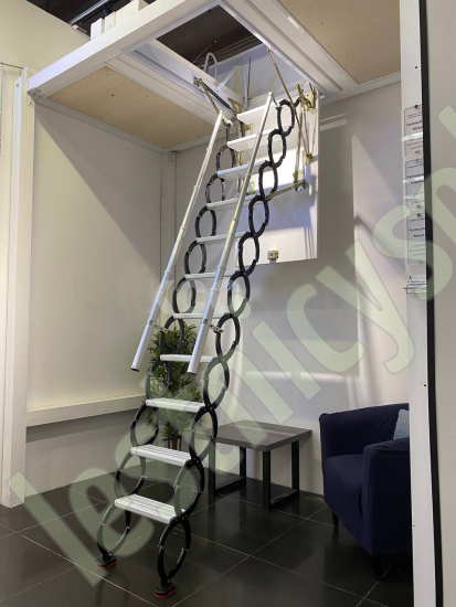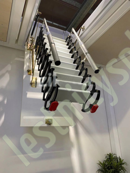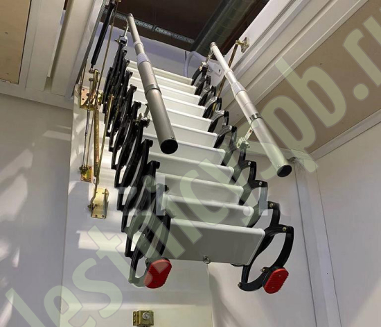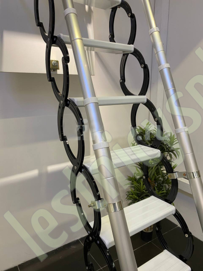 Ступени лестницы – из алюминия (белого цвета). Размер ступени 38х14 см