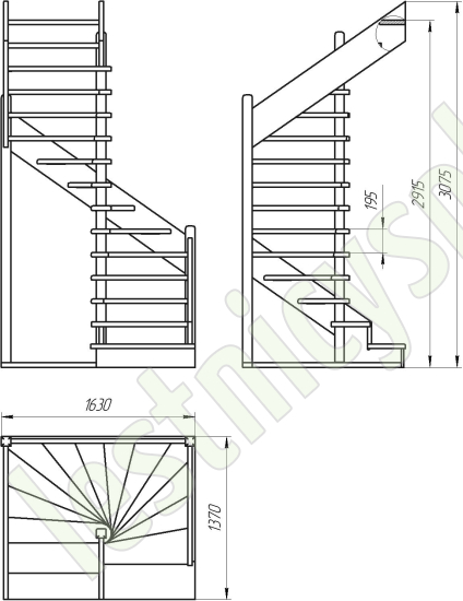 Высота лестницы 2915 - 3075 мм