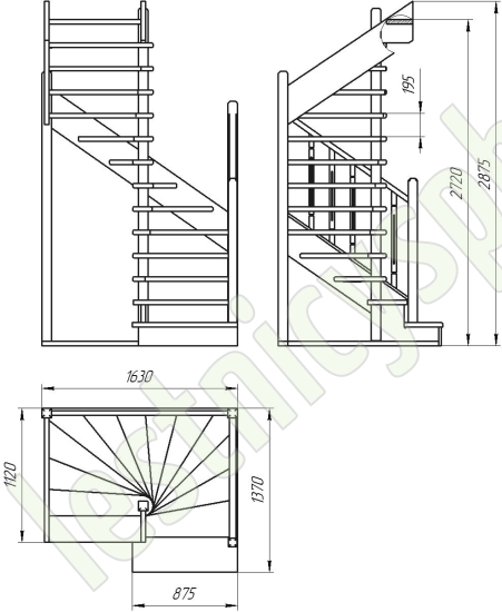 Удобная поворотная лестница на второй этаж. Дополнительные ограждения по первому маршу обеспечивают безопасность при подъеме и спуске, кроме того, небольшой угол подъема открывает всю площадь ступеней. Монтаж осуществляется силами двух человек на объекте по указаниям, приведенным в паспорте на лестницу.