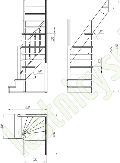 Высота лестницы 2925 - 3150 мм