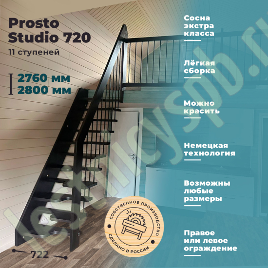 Лестница Prosto Studio 720 гусиный шаг имеет компактную конструкцию на подвесах