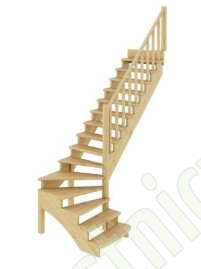 Поворот лестницы на 90 градусов выполнен через 4 забежные ступени. Первая (снизу) ступень - пригласительная, имеет скругленные внешние углы.