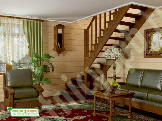 Ступени и поручень лестницы изготовлены из бука, остальные элементы из сосны.