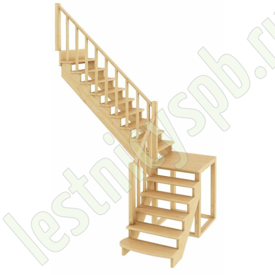 Базовый комплект включает в себя деревянные элементы лестницы и ограждения без какого-либо покрытия