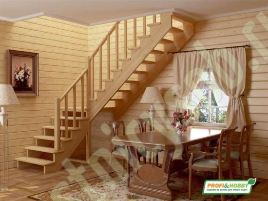 Ступени и поручень лестницы изготовлены из бука, остальные элементы из сосны.