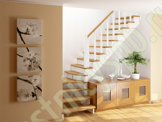 Ступени и поручень лестницы изготовлены из бука, остальные элементы из сосны.