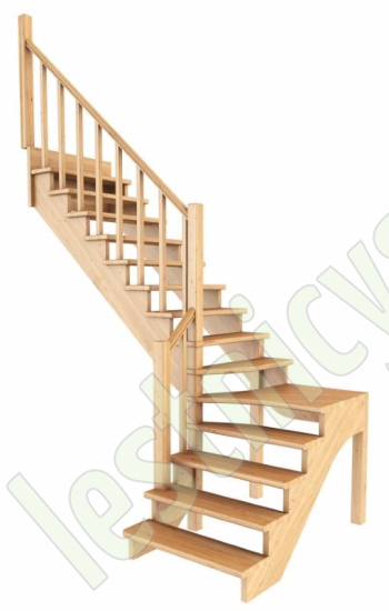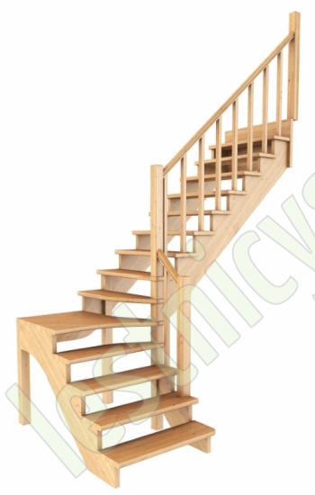 Ступени и поручень лестинцы изготовлены из бука, остальные элементы из сосны. Возможно изготовление данной модели полностью из бука. Базовый комплект включает в себя деревянные элементы лестницы и ограждения без какого-либо покрытия.
