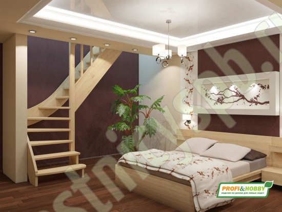 Ступени и поручень лестницы изготовлены из бука, остальные элементы из сосны.