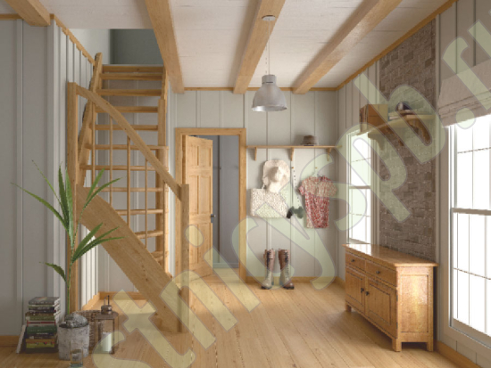 Ступени и поручень лестницы изготовлены из бука, остальные элементы из сосны.