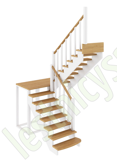 Ступени и поручень лестницы выполнены из дуба, остальные элементы из сосны. Возможно изготовление данной модели полностью из дуба.