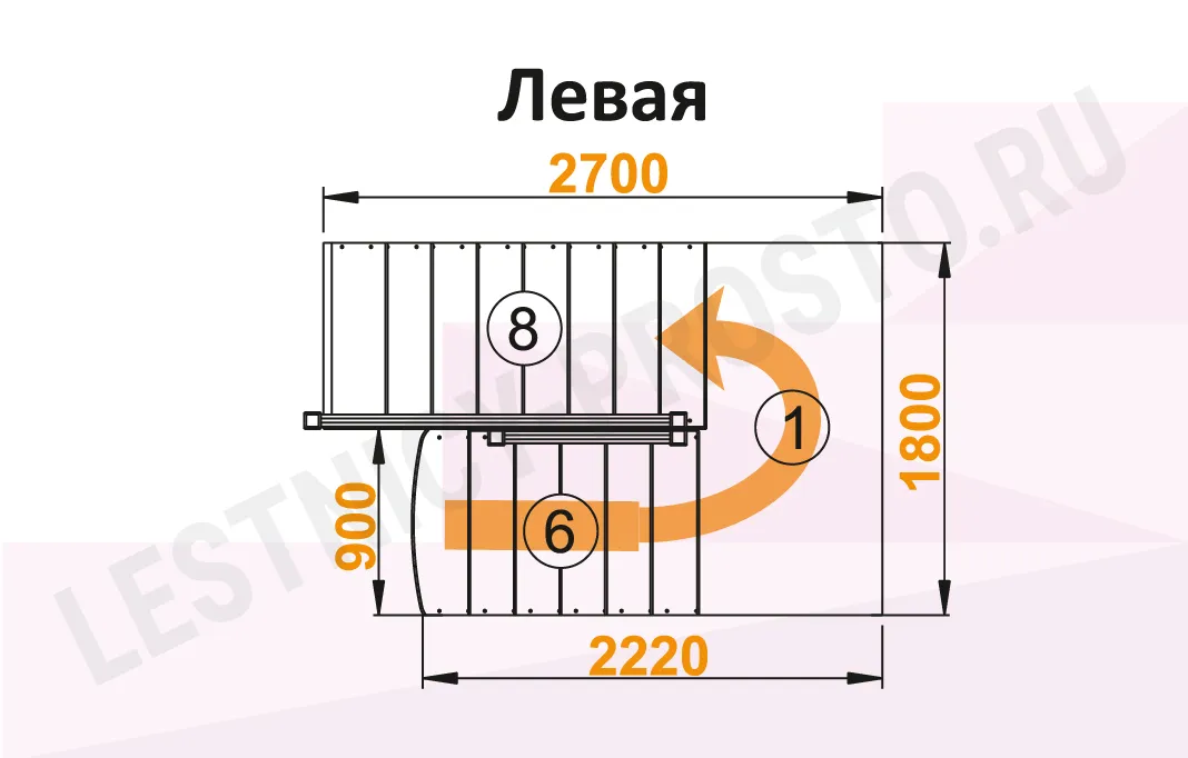Глубина ступени 270 мм