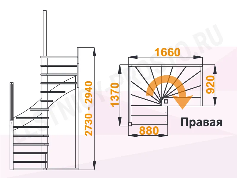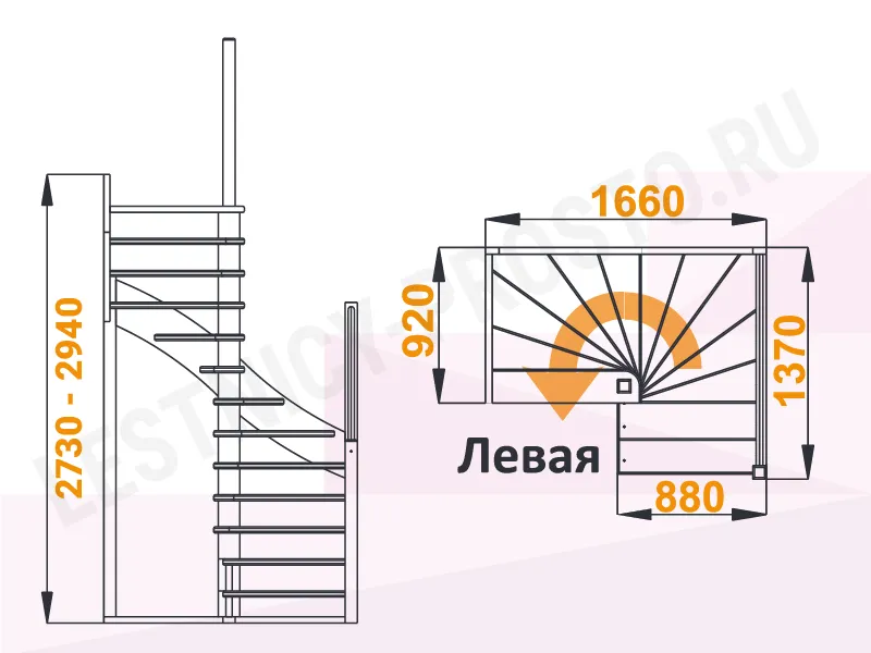 Высота лестницы 2730 - 2940 мм
