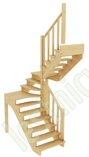 Базовый комплект включает в себя деревянные элементы лестницы и ограждения без какого-либо покрытия.