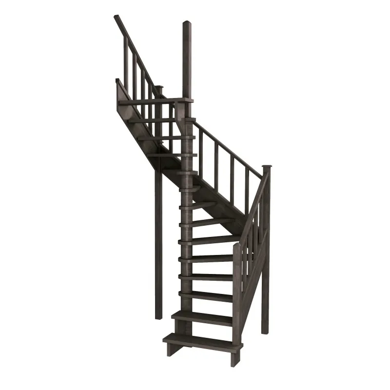 Базовый комплект включает в себя деревянные элементы лестницы и ограждения без какого-либо покрытия.