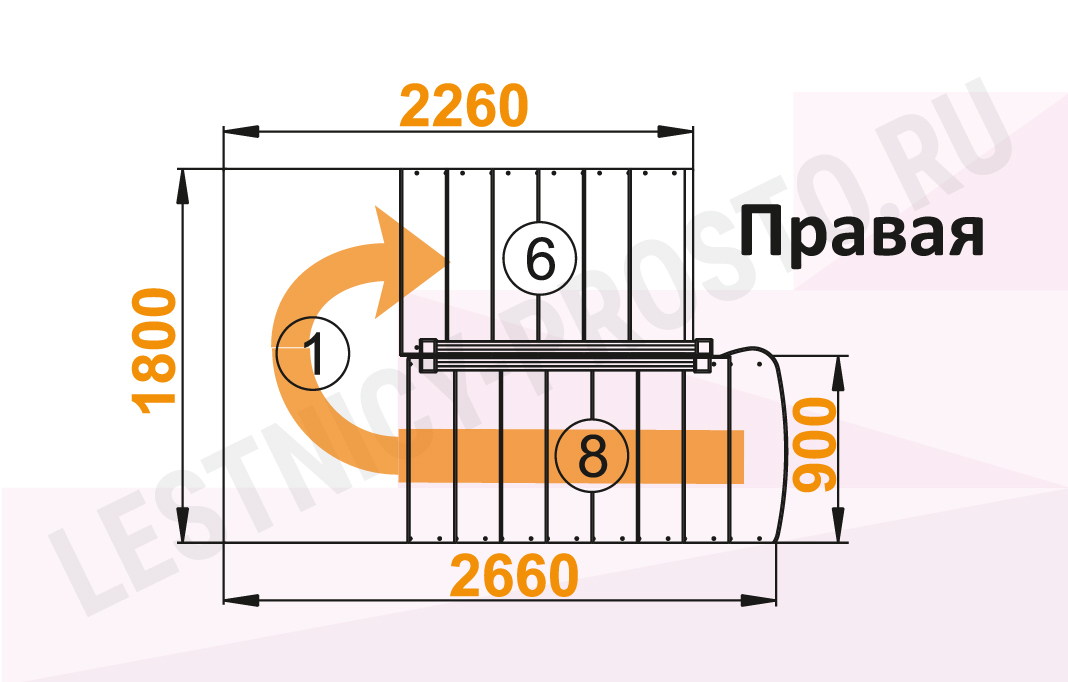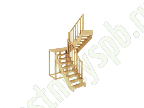 Базовый комплект включает в себя деревянные элементы лестницы с подступёнками и ограждения без какого-либо покрытия. Стандартное ограждение можно заменить любым на ваш вкус (стоимость может измениться).