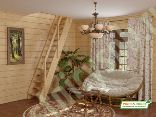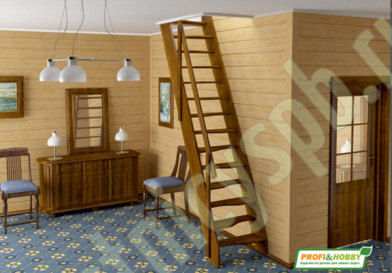 Базовый комплект включает в себя деревянные элементы лестницы и ограждения без какого-либо покрытия.