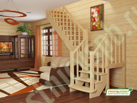 Базовый комплект включает в себя деревянные элементы лестницы и ограждения без какого-либо покрытия.