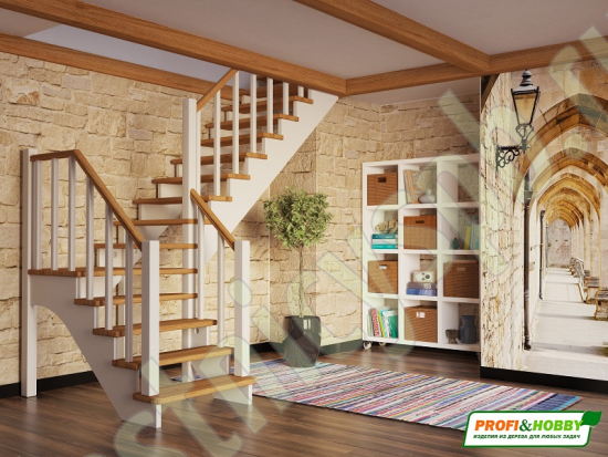 Базовый комплект включает в себя деревянные элементы лестницы и ограждения без какого-либо покрытия.
