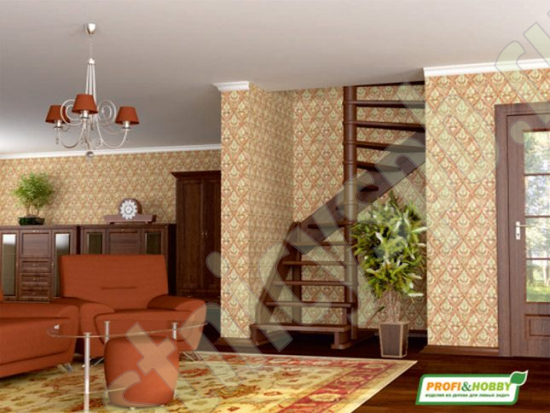 В производстве лестницы ЛС-01м под покраску используется сосна с небольшими изменениями цвета, что практически не влияет на ее механические свойства и почти незаметно при покраске в темные цвета. Базовый комплект включает в себя деревянные элементы лестницы без какого-либо покрытия.