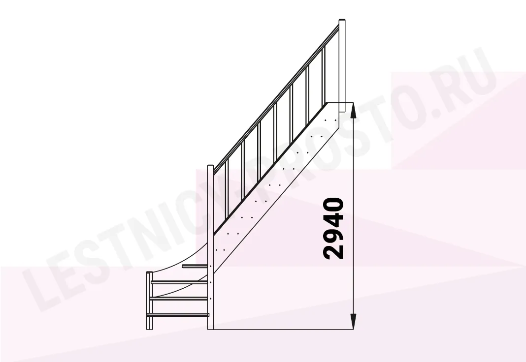 Базовый комплект включает в себя деревянные элементы лестницы с подступёнками и ограждения без какого-либо покрытия.
