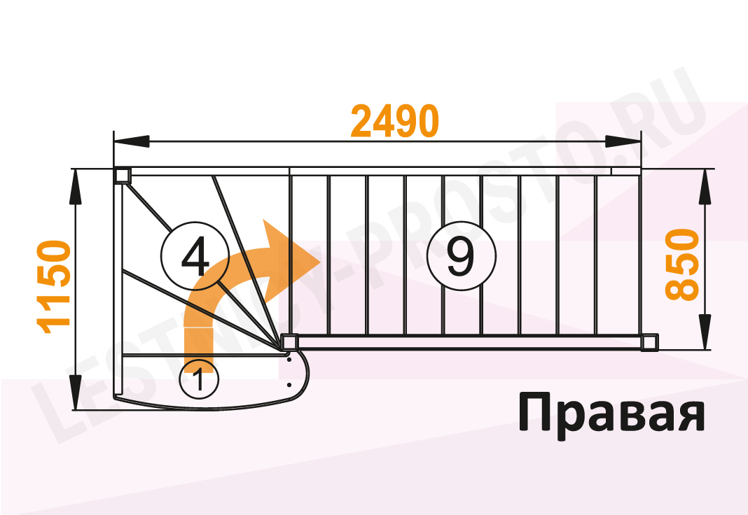 Габариты в плане 2490 х 1150 мм