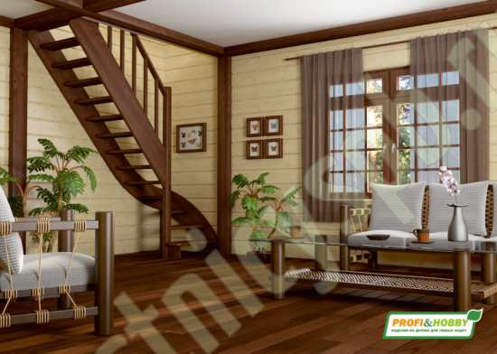 Базовый комплект включает в себя деревянные элементы лестницы и ограждения без какого-либо покрытия.